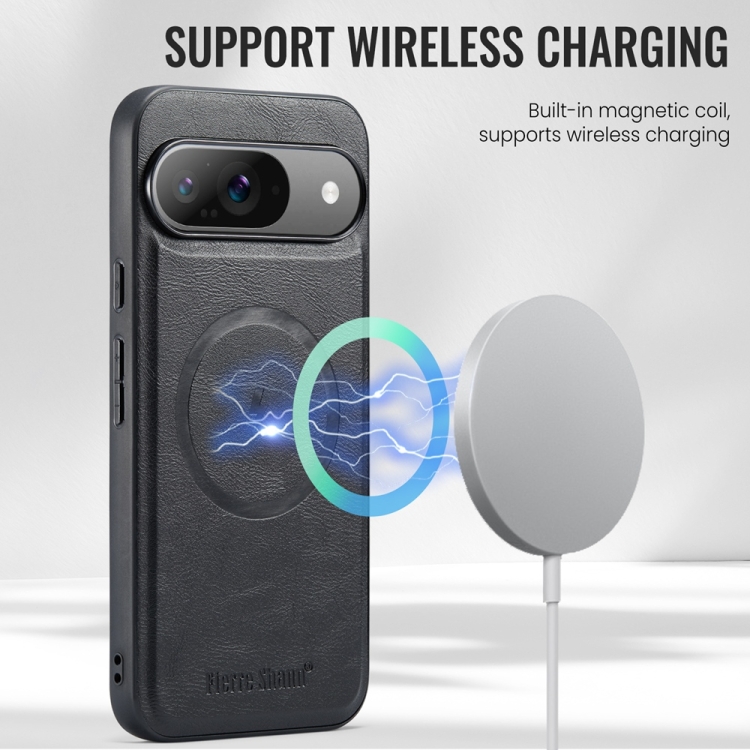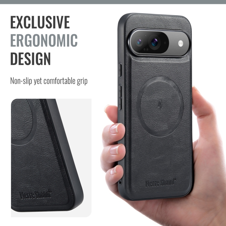 Funda Magnética Fierre Shann para Google Pixel 9 Pro XL con Textura de Piel de Vaca (Negra)