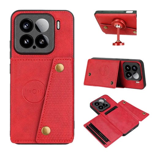 Funda Magnética Para Teléfono Xiaomi 15 Con Ranuras Para Tarjetas Y Doble Hebilla (Roja)