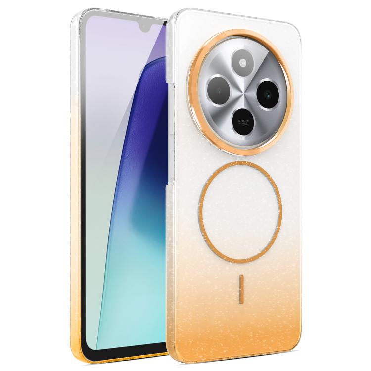 Funda MagSafe a prueba de golpes para Xiaomi Redmi 14C 4G con purpurina dorada y degradado (dorada)