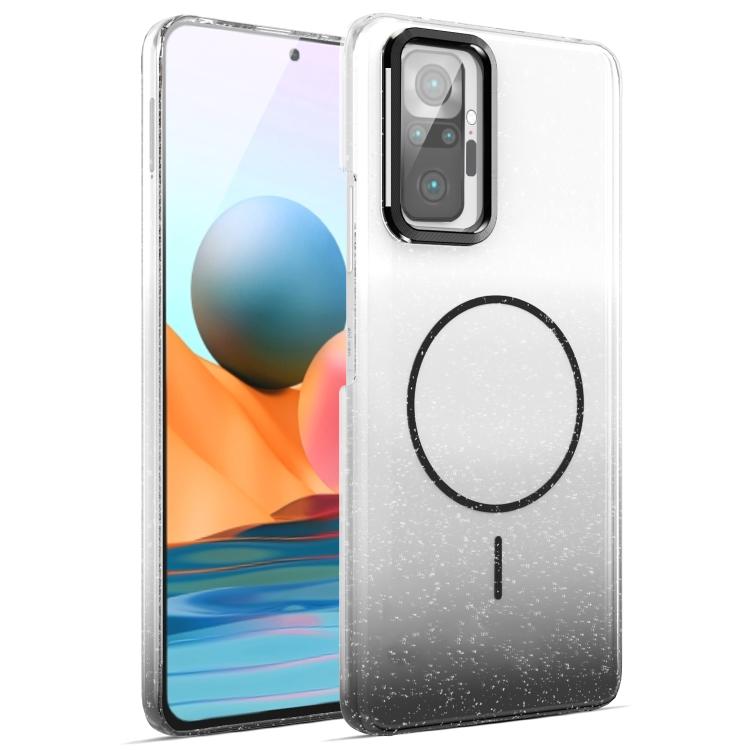 Funda MagSafe a prueba de golpes para Xiaomi Redmi Note 10 Pro con purpurina dorada y degradado (negro)