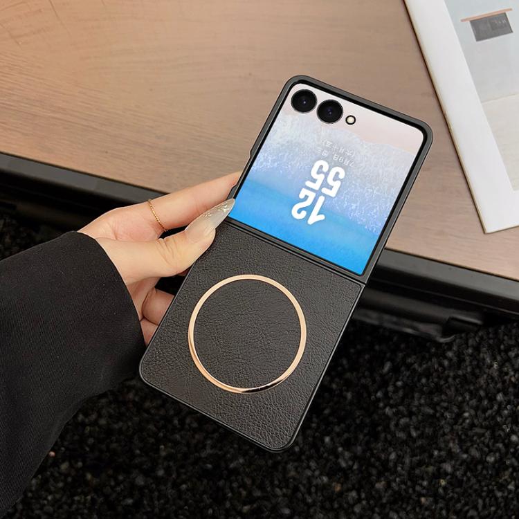 Funda MagSafe con textura Crazy Horse para Samsung Galaxy Z Flip5 (negra)