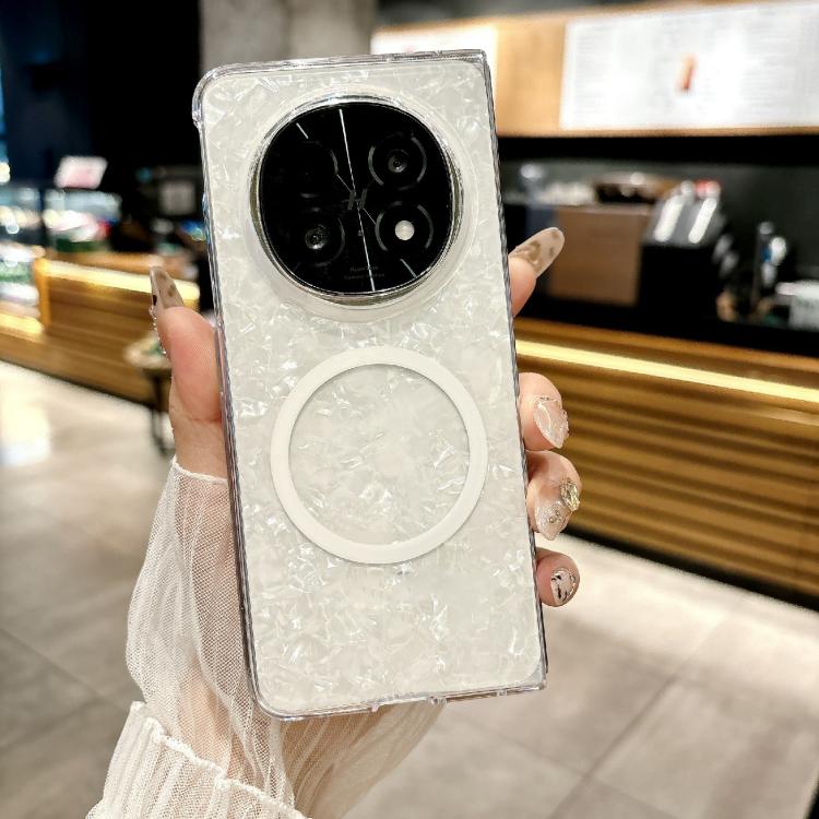 Funda Magsafe con Textura Perlada para Oppo Find N5 (Blanca)