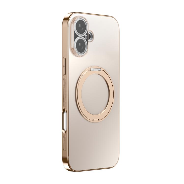 Funda MagSafe electrochapada para iPhone 17 con soporte giratorio de 360 grados y cubierta para lente (Oro desierto)