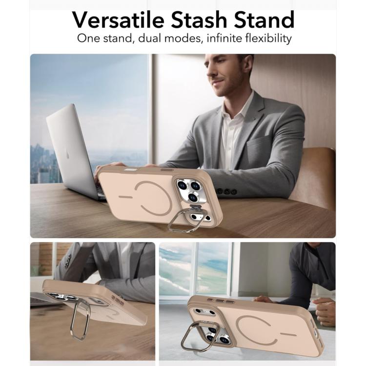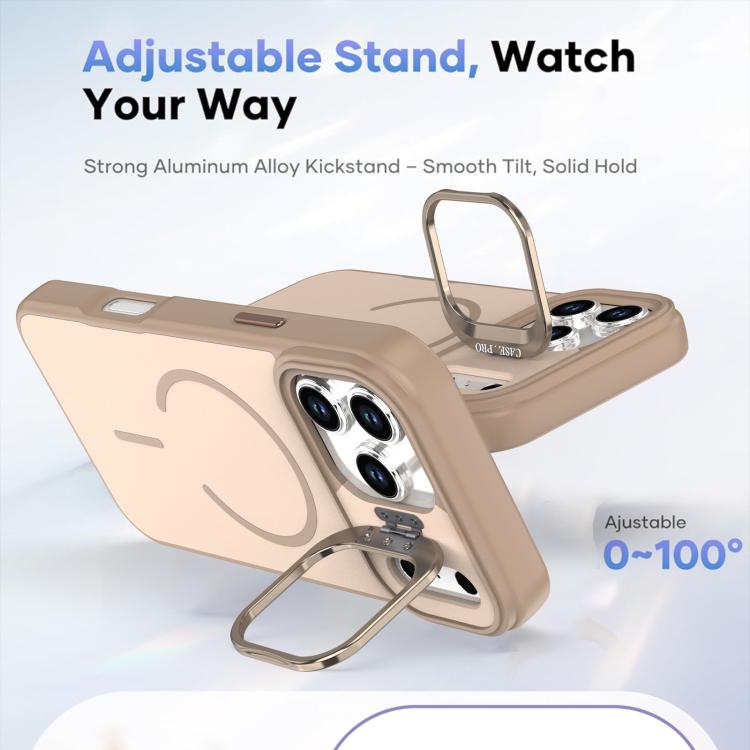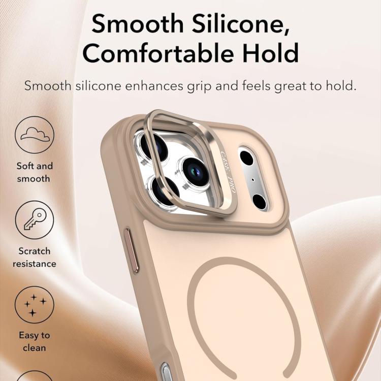 Funda Magsafe para iPhone 17 Pro Max con soporte para cámara y tacto suave en contraste de colores brillantes (dorado desierto)