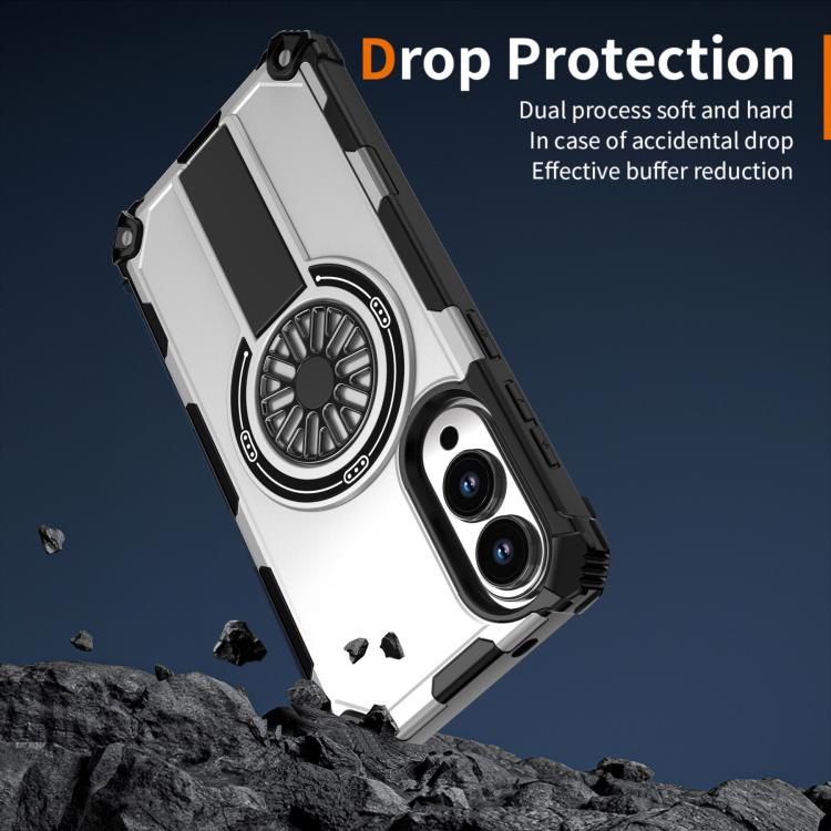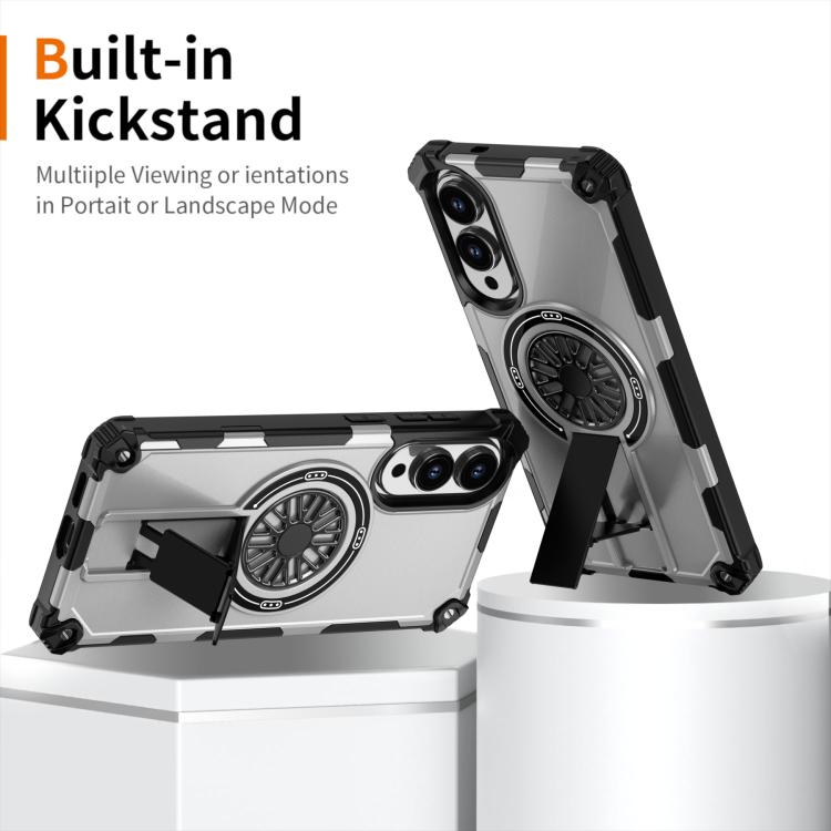 Funda MagSafe para Samsung Galaxy S25 Edge 5G, a prueba de golpes, con soporte metálico y eje (plateada)