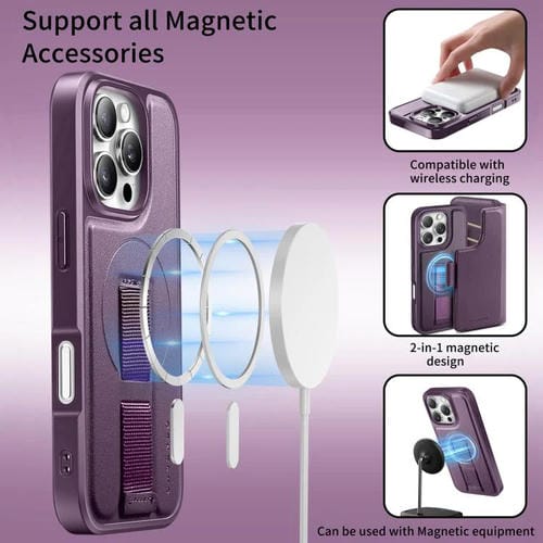 Funda Neo de cuero con correa de agarre para el dedo para iPhone 17 (morada)