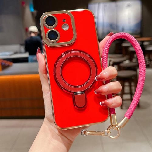 Funda para iPhone 12 con Soporte de Metal Galvanizado y Cordón (Rojo)