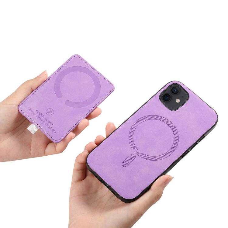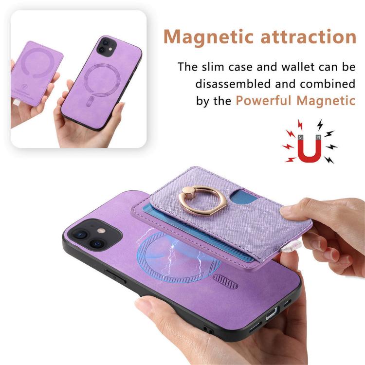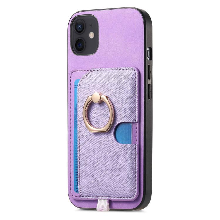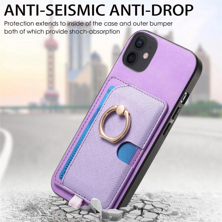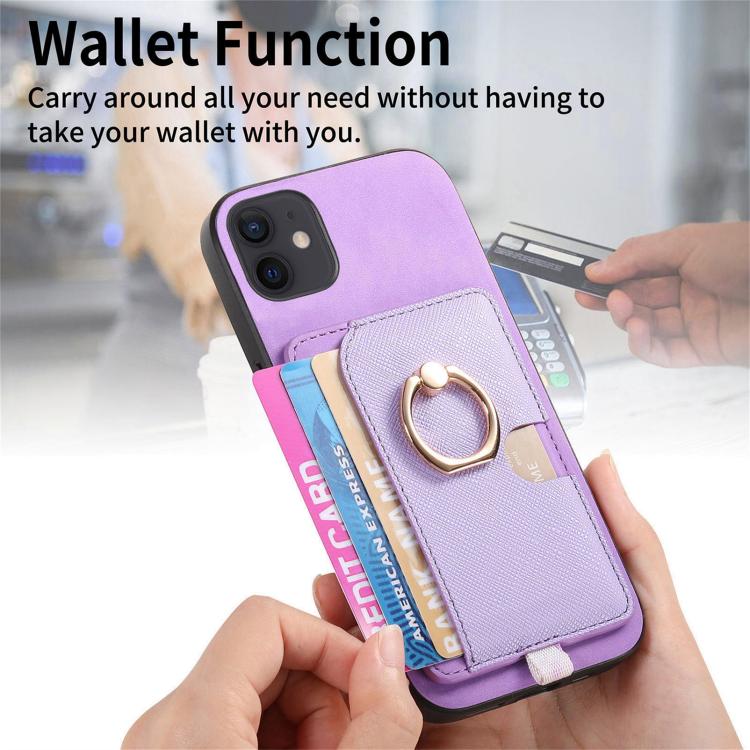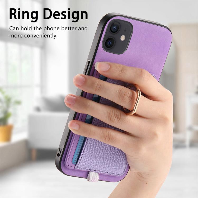 Funda para iPhone 13 Cuero Diseño Retro Cruz Ranuras para Tarjetas Anillo Lateral (Morado)
