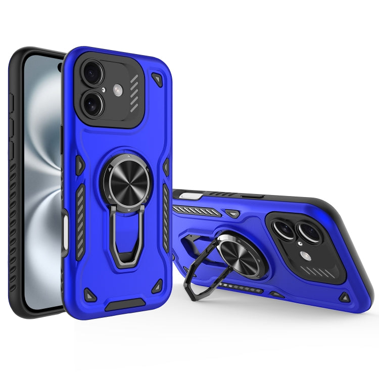 Funda para iPhone 16 Soporte Giratorio Metal Carcasa Magnética TPU PC (Azul Marino)