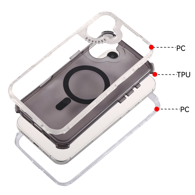 Funda para iPhone 16 Dreamland Magsafe Magnetic 3 en 1 TPU + PC (Transparente Negra)