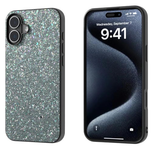 Funda para iPhone 16 Plus con Marco Negro y Purpurina de Colores (Negro y Verde)