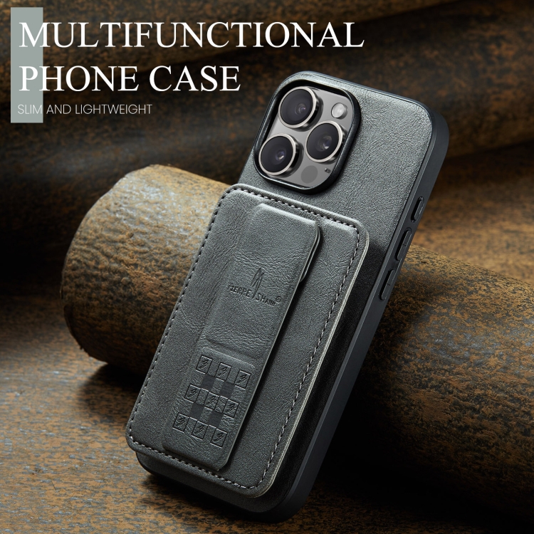 Funda para iPhone 16 Pro Max Fierre Shann Piel de Vaca con Cera y Tarjetero (Gris)