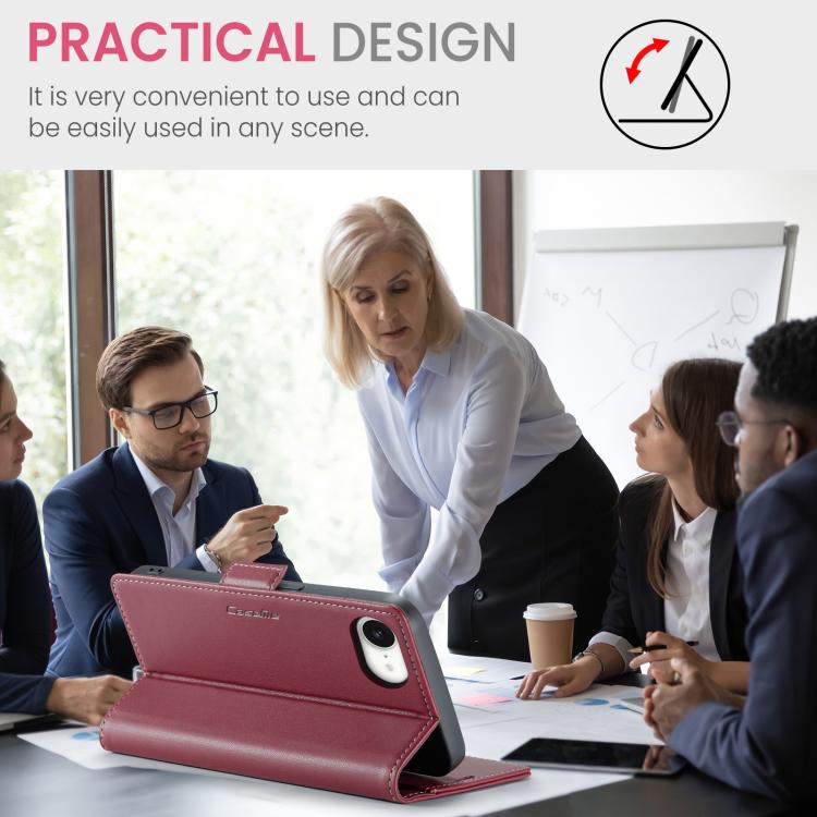 Funda para iPhone 16E Caseme 023 con Hebilla de Mariposa Textura de Lichi Antirrobo Rfid (Rojo)
