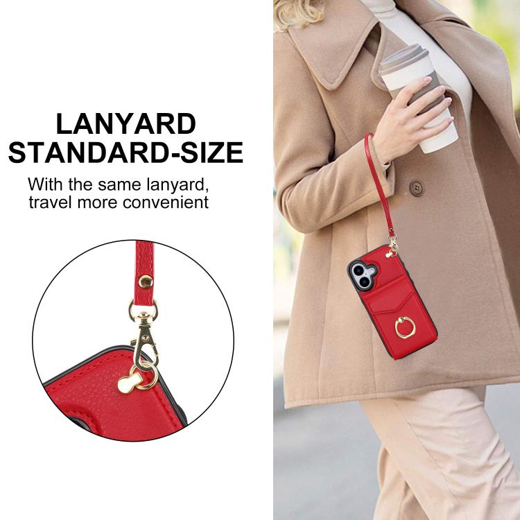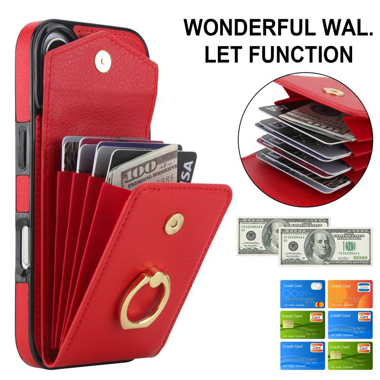 Funda para iPhone 17 con ranura para tarjeta RFID y soporte de anillo (roja)