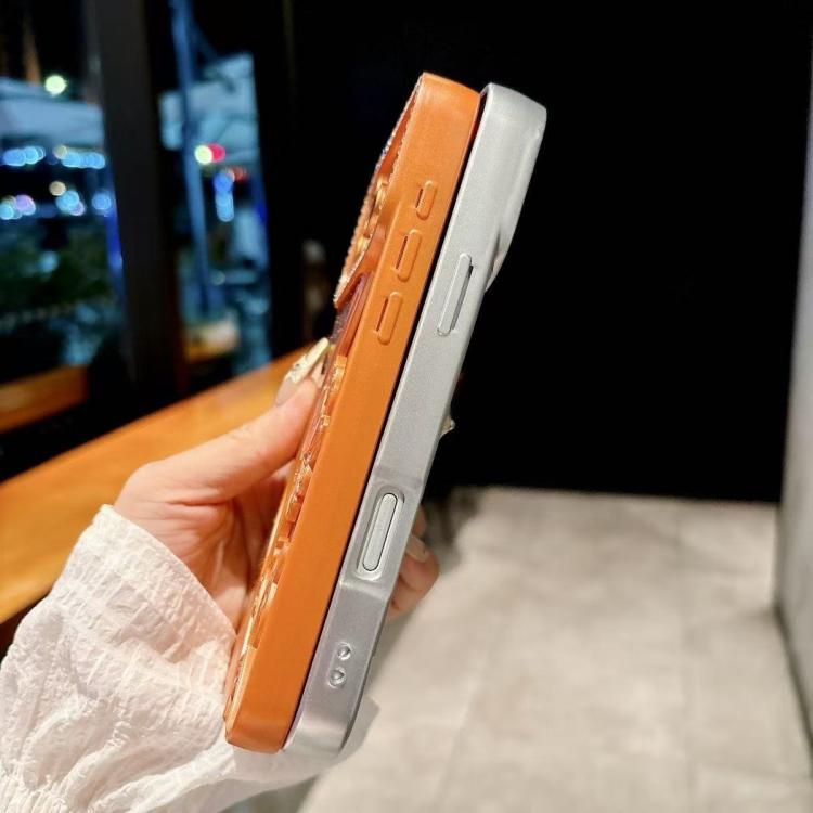 Funda para iPhone 17 de TPU electrochapado con loto, calada, con diamantes de imitación y purpurina (rosa)