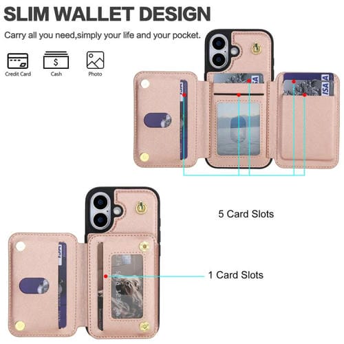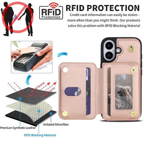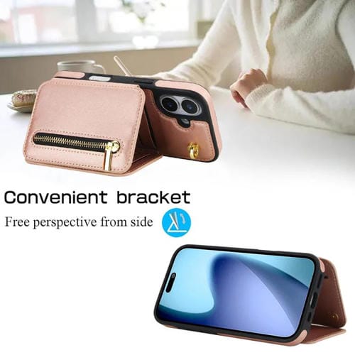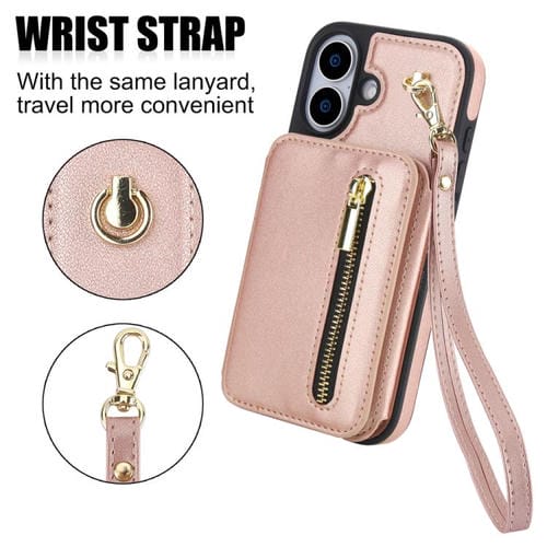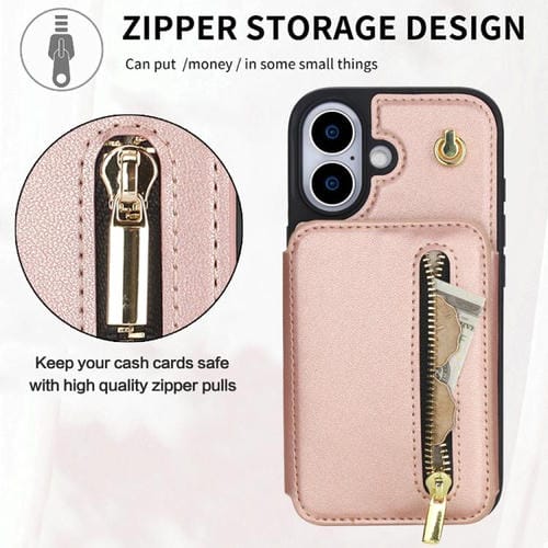 Funda para iPhone 17 YM006 con cremallera y doble cordón (oro rosa)