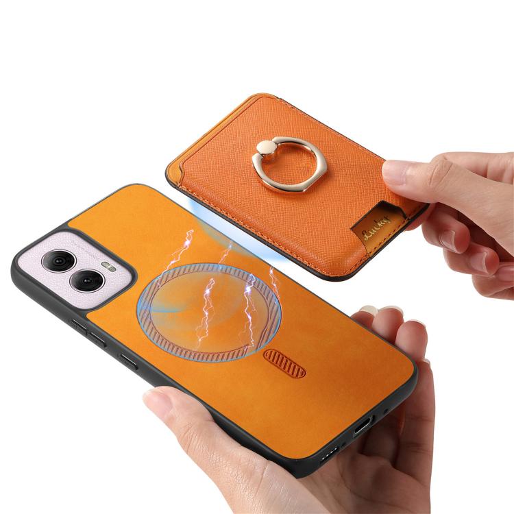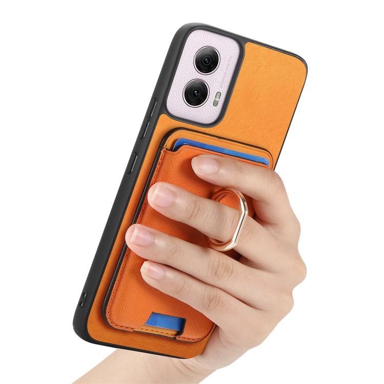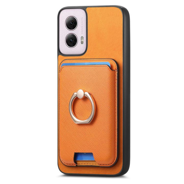 Funda para Motorola Moto G Play 4G (2024) con Ranuras para Tarjetas y Anillo de Cuero (Amarillo)