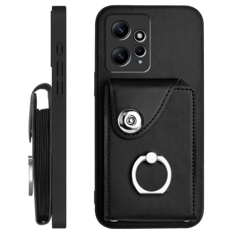 Funda para Redmi Note 12 4G con tarjetero y anilla, con cordón largo (negro)