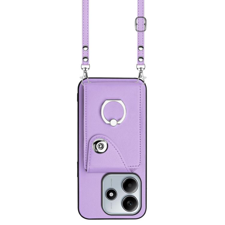 Funda para Redmi Note 14 5G con tarjetero, anilla y cordón largo (morado)