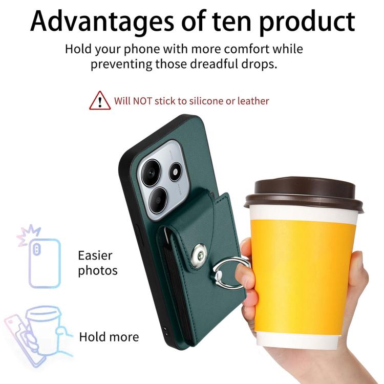Funda para Redmi Note 14 5G con tarjetero y anilla, con cordón largo (verde)