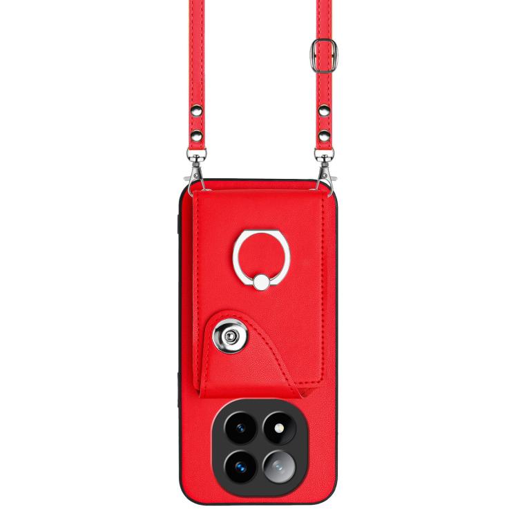 Funda para Redmi Note 14 Pro+ 5G con tarjetero, anilla y cordón largo (rojo)