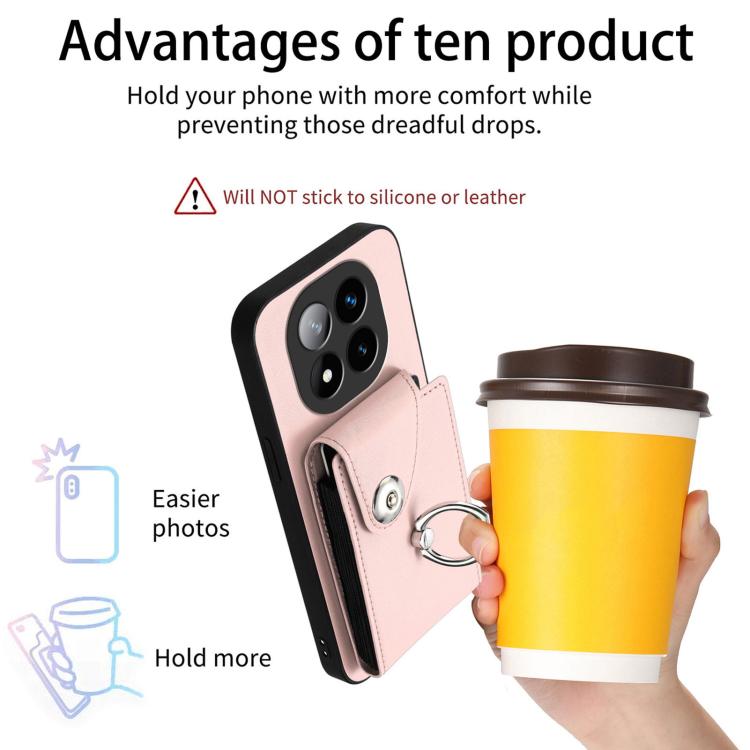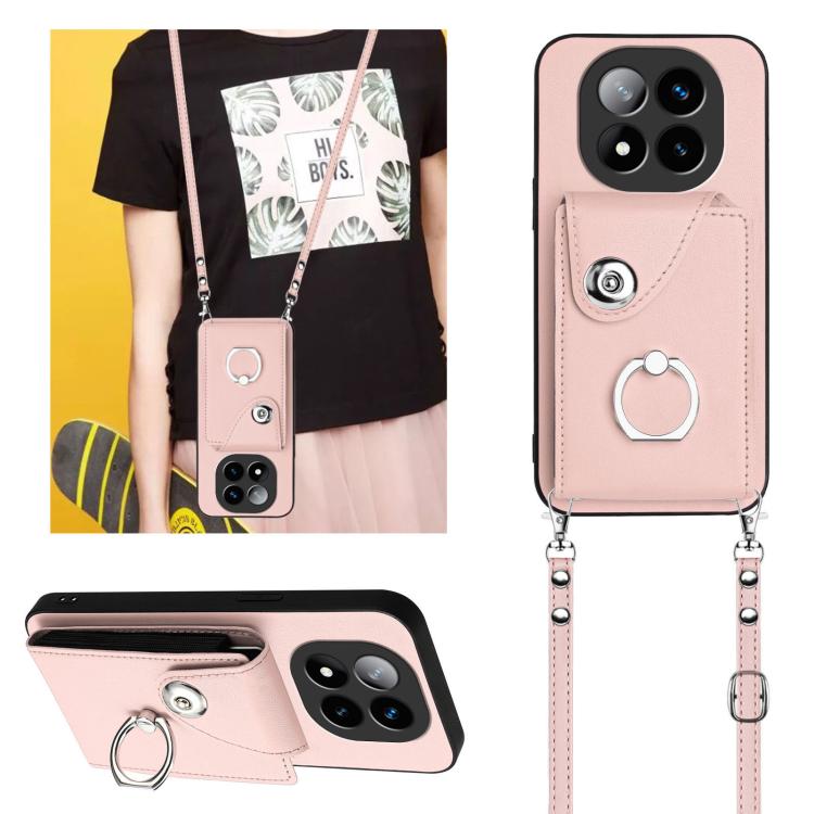 Funda para Redmi Note 14 Pro+ 5G con tarjetero, anilla y cordón largo (rosa)