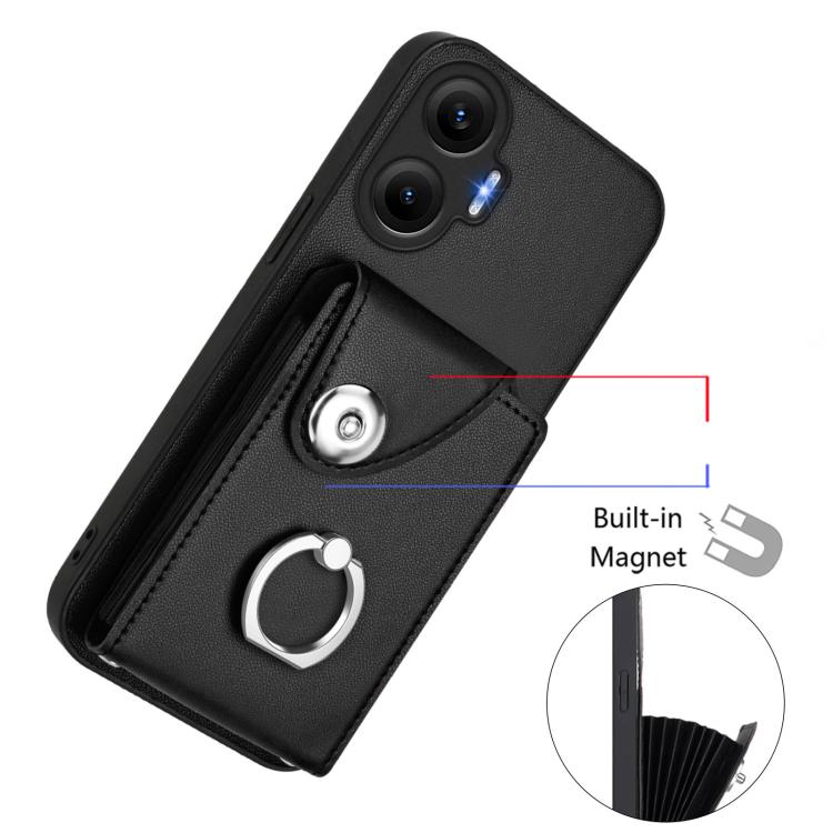Funda para Redmi Turbo 4 Pro / Poco F7 con tarjetero, anilla y cordón largo (negro)