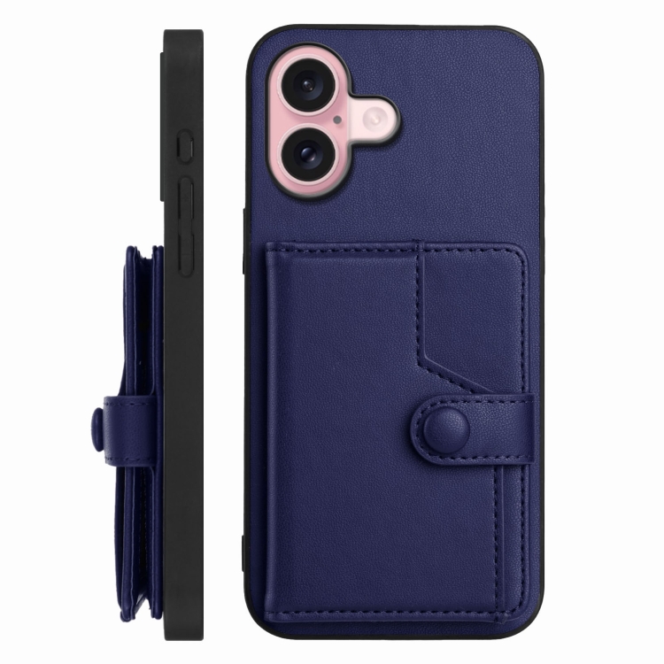 Funda para Teléfono Antirrobo Rfid con Botón y Tarjetero para iPhone 16 (Azul)