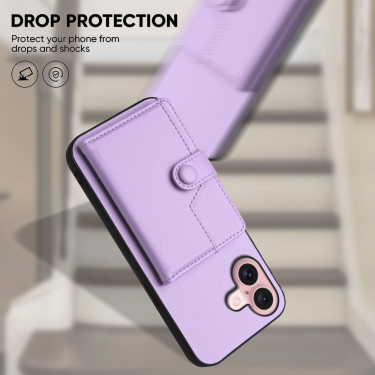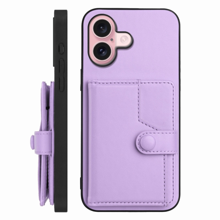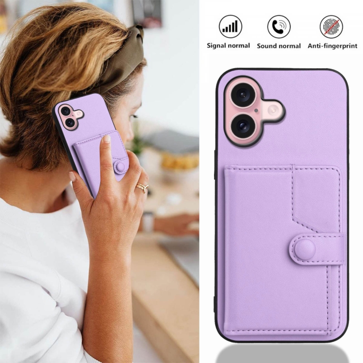 Funda para Teléfono Antirrobo Rfid con Botón y Tarjetero para iPhone 16 (Morado)