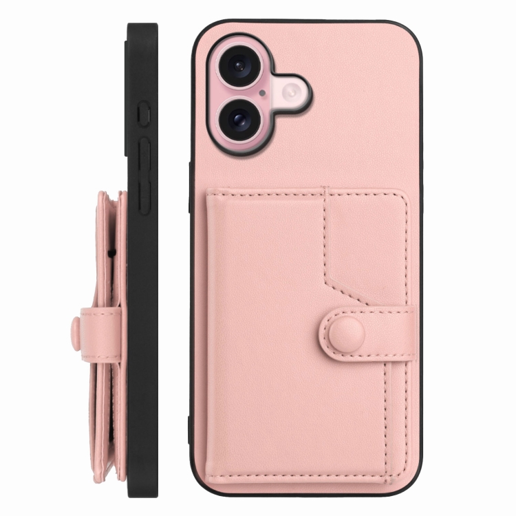 Funda para Teléfono Antirrobo Rfid con Botón y Tarjetero para iPhone 16 (Rosa)