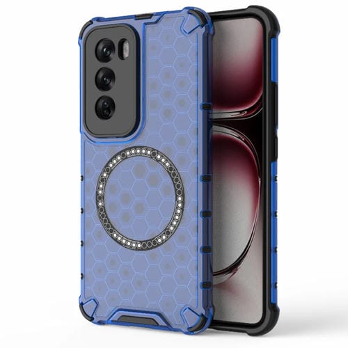 Funda para Teléfono con Anillo Magnético a Prueba de Golpes con Diseño de Panal de Abeja para Oppo Reno12 Pro (Azul)