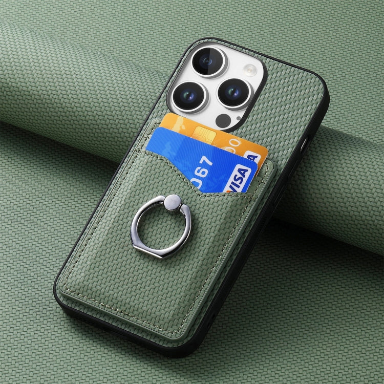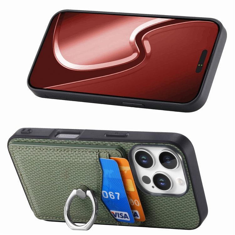 Funda para Teléfono con Anillo Tipo Billetera y Tarjetero Fibra de Carbono iPhone 16 Pro (Verde)