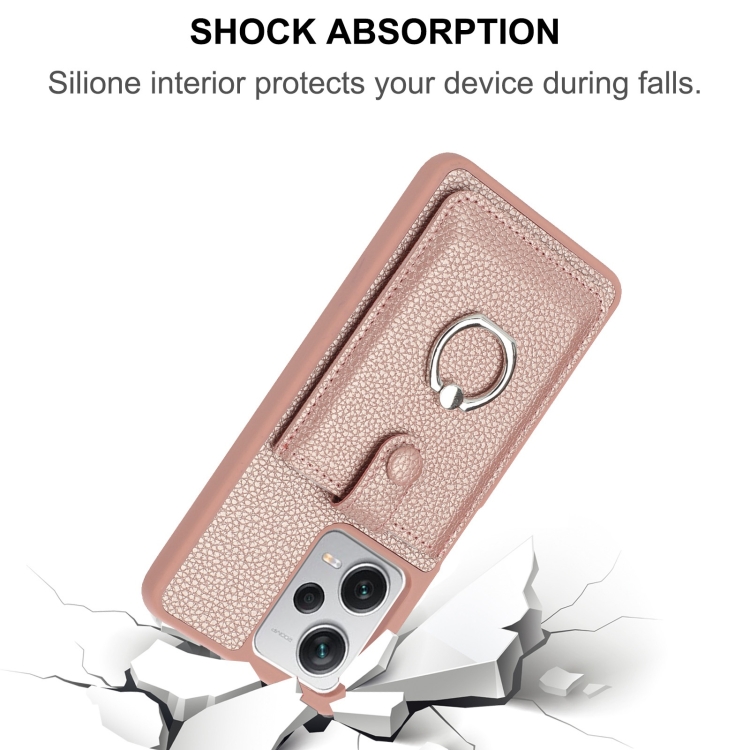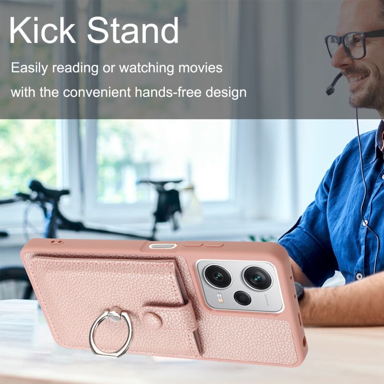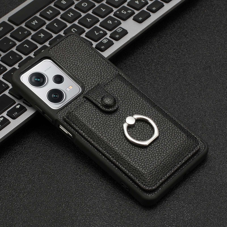 Funda para Teléfono con Anillo y Diseño de Textura de Lichi para Redmi Note 12 Pro 5G (Negra)
