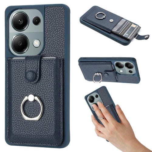 Funda para Teléfono con Anillo y Diseño de Textura de Lichi para Redmi Note 13 Pro 4G (Azul)