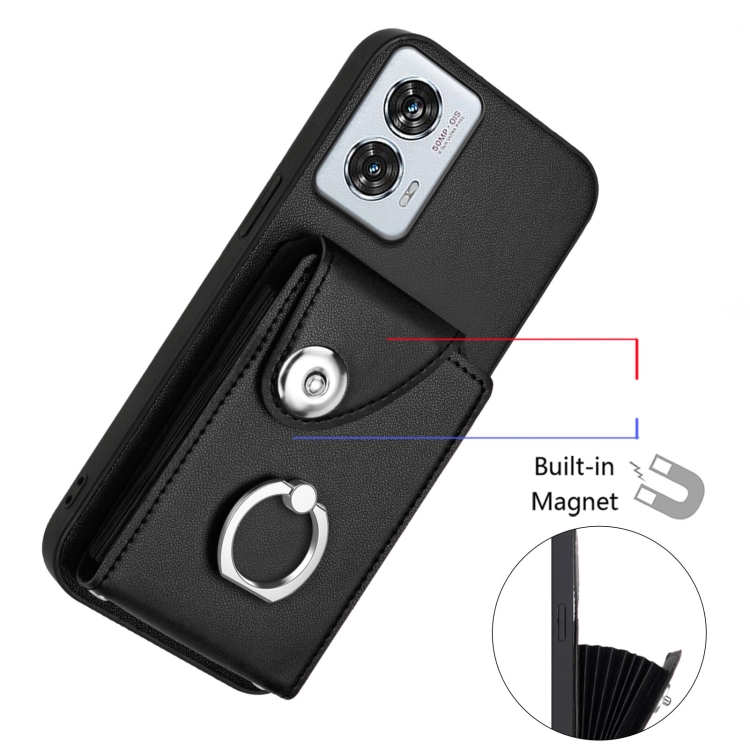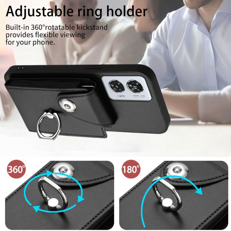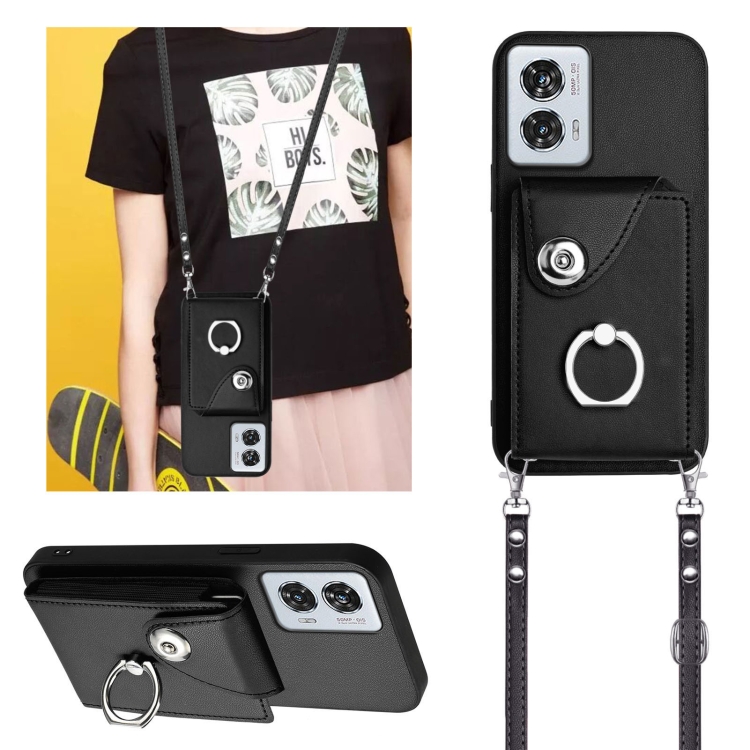 Funda para Teléfono Motorola Edge 50 Fusion con Aro, Tarjetero y Cordón Largo (Negro)