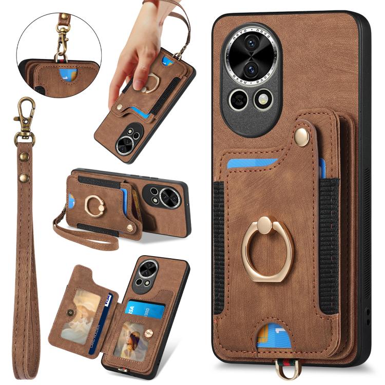 Funda para Teléfono Huawei Nova 13 con Billetera MultiTarjeta y Anillo (Marrón)