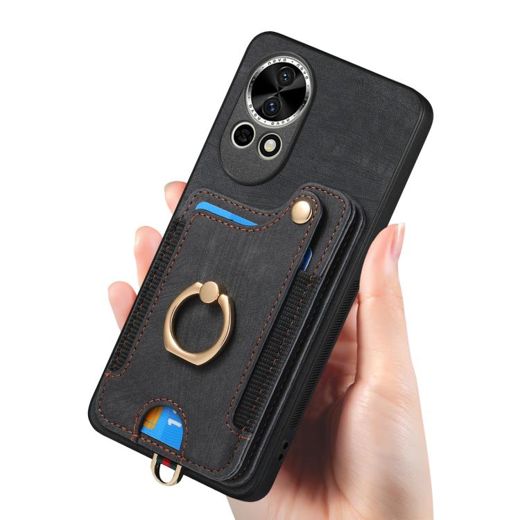 Funda para Teléfono Huawei Nova 10 Pro con Billetera MultiTarjeta, Diseño Retro, Sensación de Piel y Anillo (Negra)