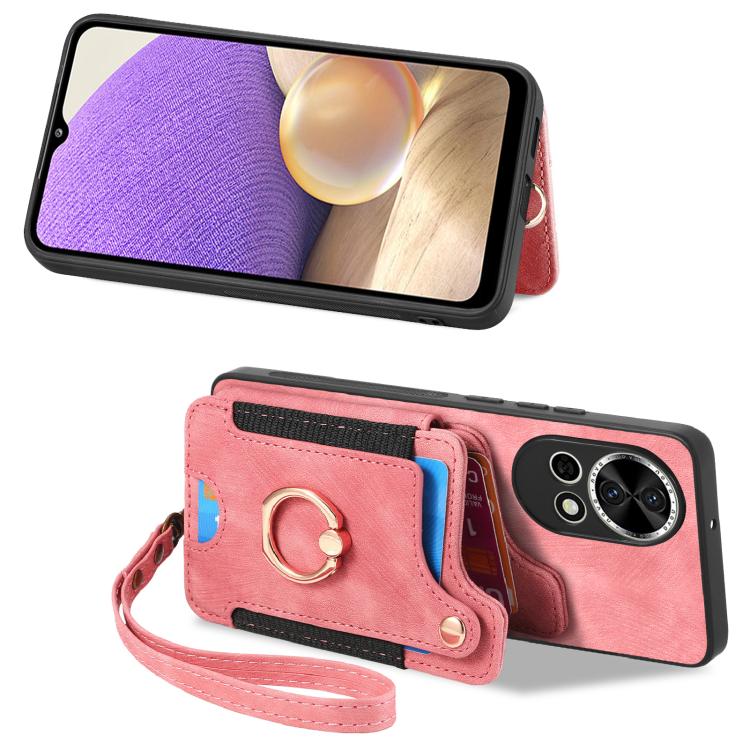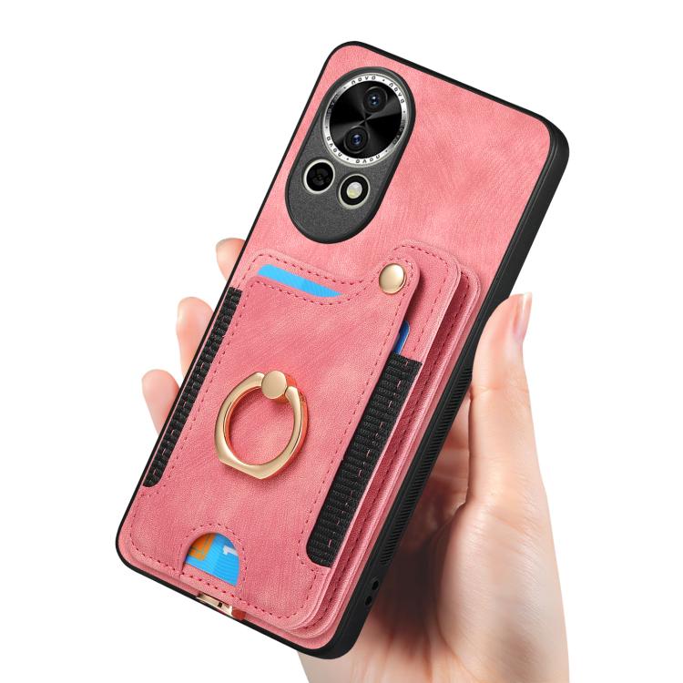 Funda para Teléfono Huawei Nova 10 Pro con Billetera MultiTarjeta Diseño Retro Piel Sintética y Anillo (Rosa)