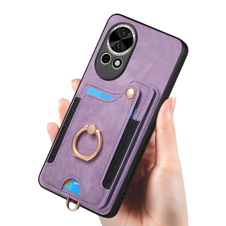 Funda para Teléfono Huawei Nova 11 con Billetera MultiTarjeta Piel Sintética y Anillo (Morado)