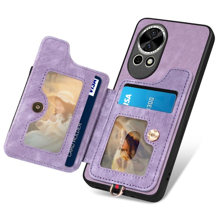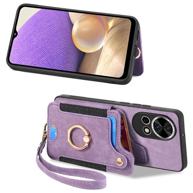 Funda para Teléfono Huawei P60 con Billetera MultiTarjeta y Anillo de Piel Sintética (Morado)