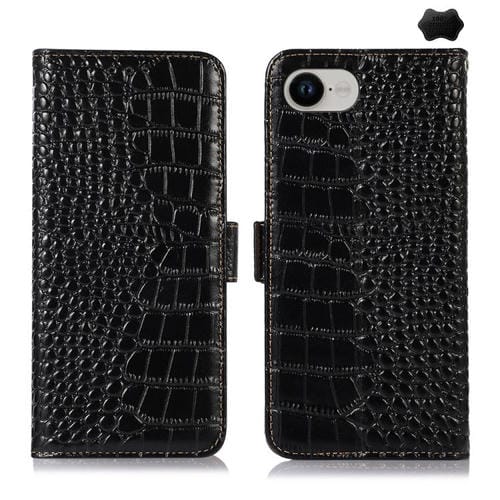 Funda para Teléfono iPhone 16E Piel de Vaca y Cocodrilo (Negra)