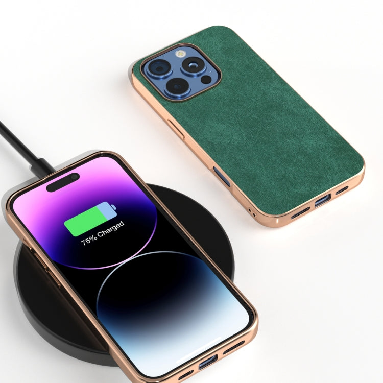 Funda para Teléfono Cuero Sintético con Marco Galvanizado iPhone 16 Pro Max (Verde)