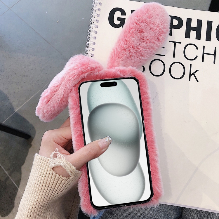 Funda para Teléfono iPhone 15 Cobertura Total Conejo Orejas Largas 3D (Rosa)
