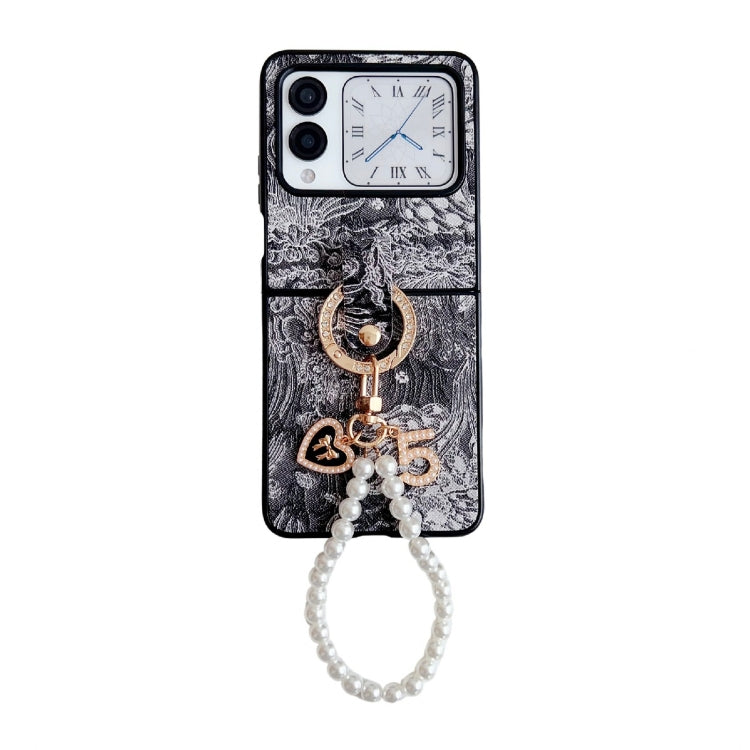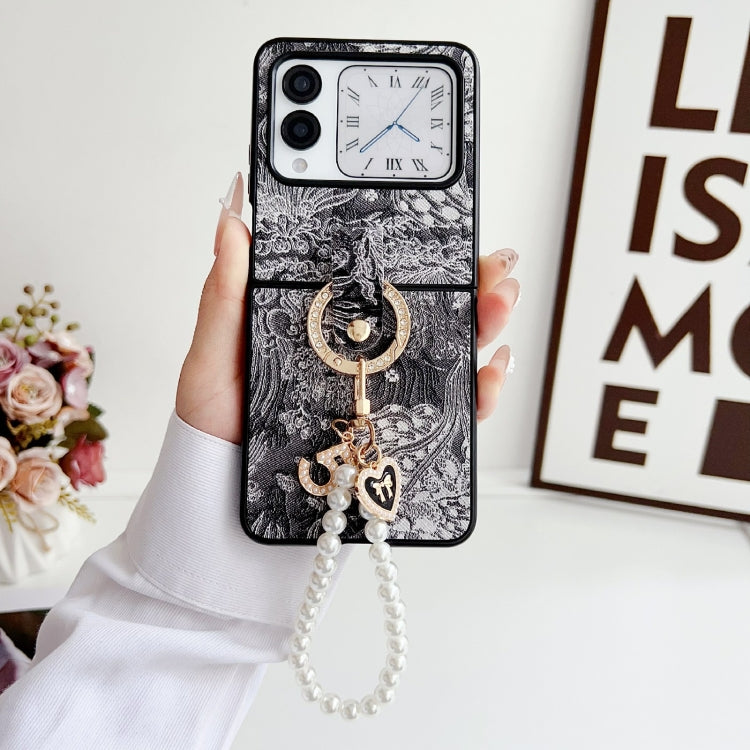 Funda para Teléfono Huawei Nova Flip Cobertura Total Bordado con Cadena y Anillo (Negro)