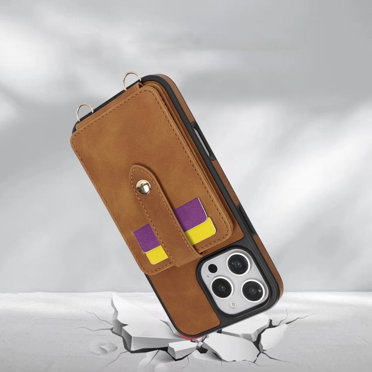 Funda para Teléfono Bandolera con Cordón y Tarjeta para iPhone 16 (Marrón)