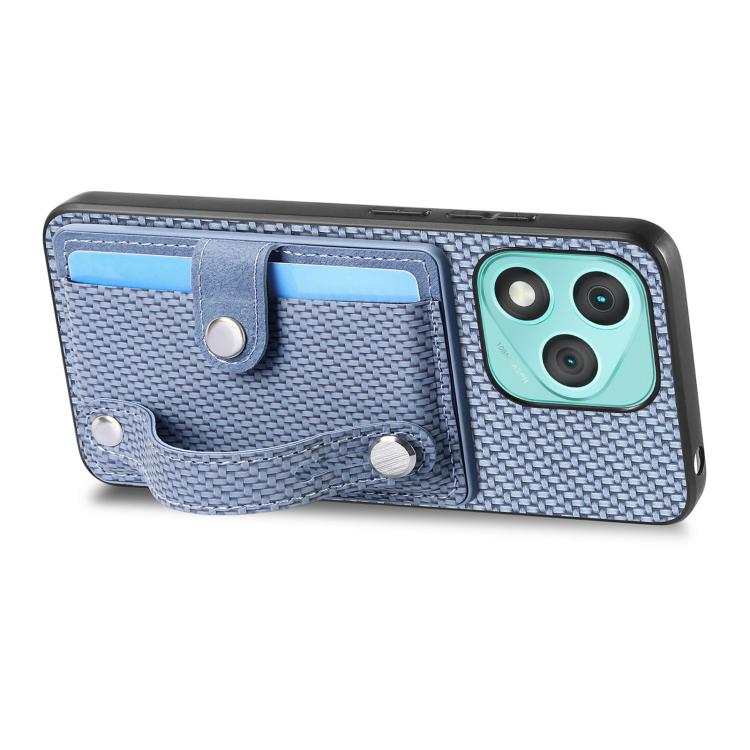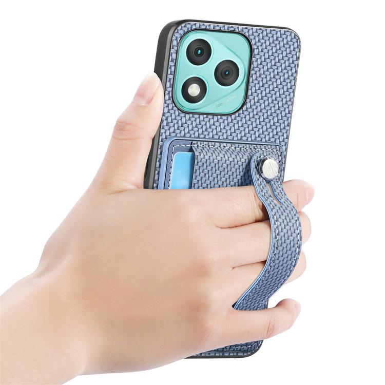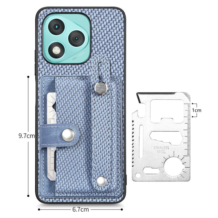 Funda para teléfono con correa de muñeca y soporte para tarjetas, billetera y cuchillo para Honor 400 Lite (azul)
