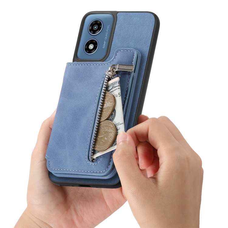 Funda para Teléfono Motorola Moto G35 con Cremallera Magsafe Retro (Azul)