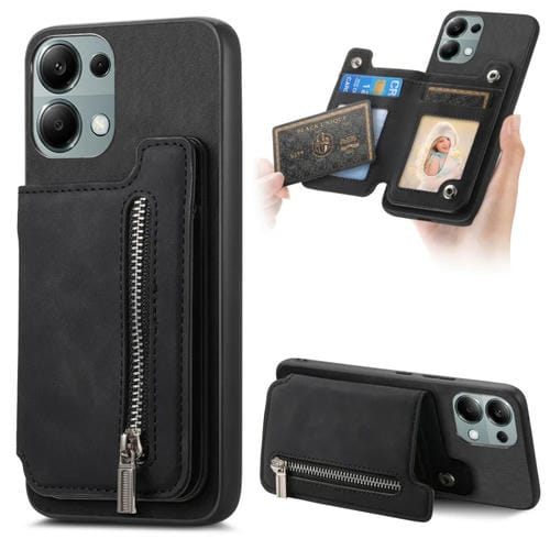 Funda para Teléfono con Cremallera Magsafe Retro para Redmi Note 13 4G (Negra)