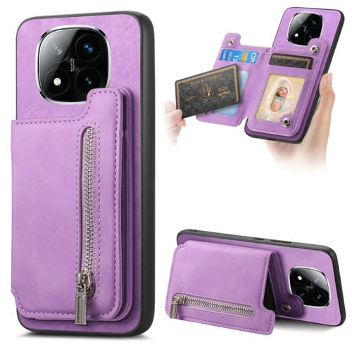 Funda para Teléfono con Cremallera Magsafe Retro para Redmi Note 14 Pro+ 5G (Morado)