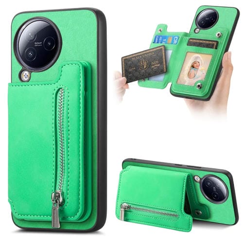 Funda para Teléfono con Cremallera Magsafe Retro para Xiaomi Civi 3 5G (Verde)